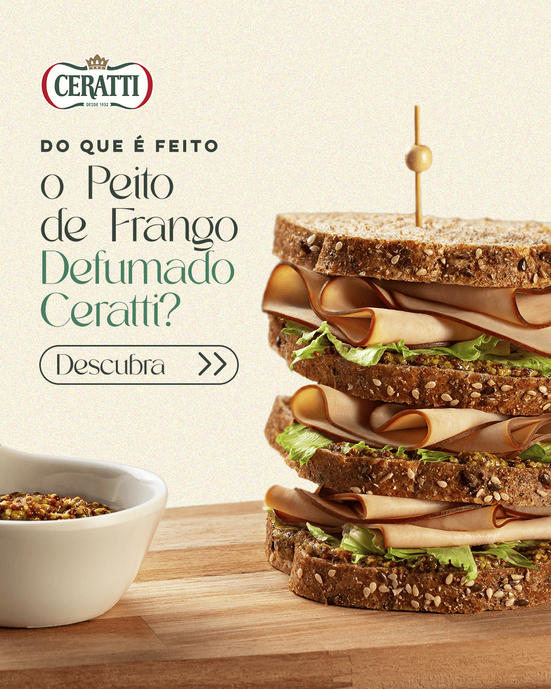 A Ceratti identificou a necessidade de reposicionar seu Peito de Frango Defumado, destacando não apenas seus atributos sensoriais, mas também sua versatilidade no dia a dia. O desafio era mostrar o produto como uma alternativa mais saborosa e sofisticada ao tradicional peito de peru, conquistando um público exigente, atento à experiência gastronômica e em busca de praticidade sem abrir mão do prazer à mesa.