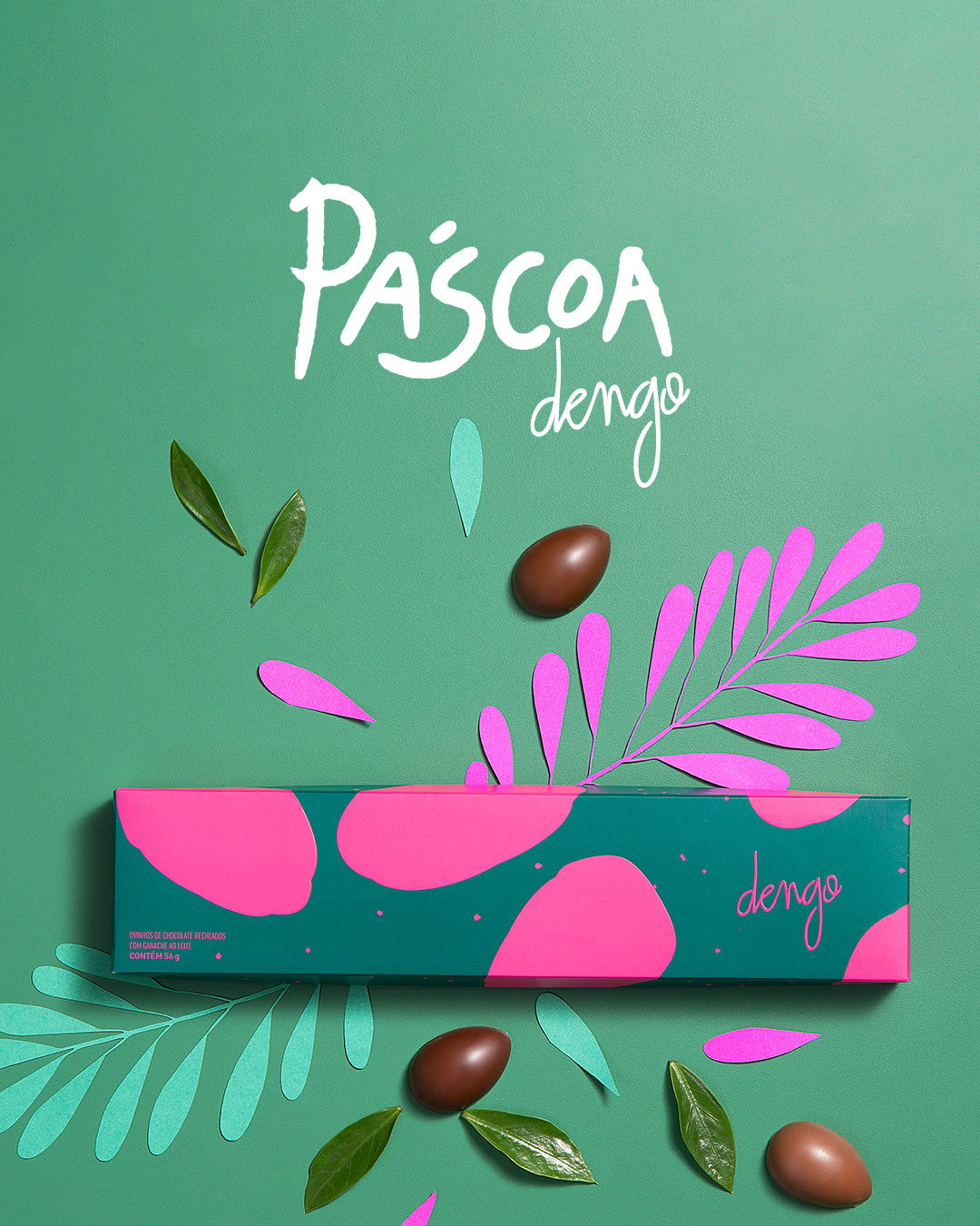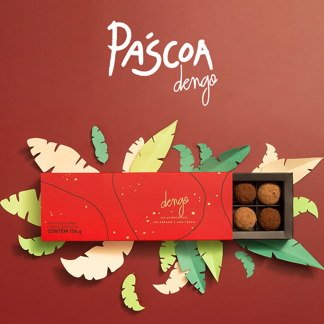 Foi criada uma campanha que tinha como peça principal um filme feito inteiramente em técnica artesanal de stop motion, trazendo uma Páscoa bem colorida e brasileira. Esse mesmo mood seguiu nas fotos dos produtos, usadas na campanha de performance e na Timeline de Instagram, que contaram com recortes de papel e tecido imitando a flora local, representando a origem brasileira da Dengo, sua preocupação com sustentabilidade e sua produção bean to bar. Foi desenvolvido também o filtro de Instagram Stories 'Roleta de Significados', que promovia a ressignificação da Páscoa, relembrando aos consumidores seu caráter celebratório, de união e renovação, muito além do chocolate.
