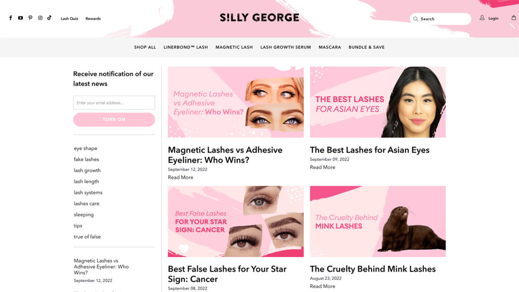 Recebemos a missão de alimentar o Girl Talk Blog, blog da Silly George, nosso cliente de produtos de beleza veganos para cílios, nascido na Australia e que atua também na Europa e nos EUA.